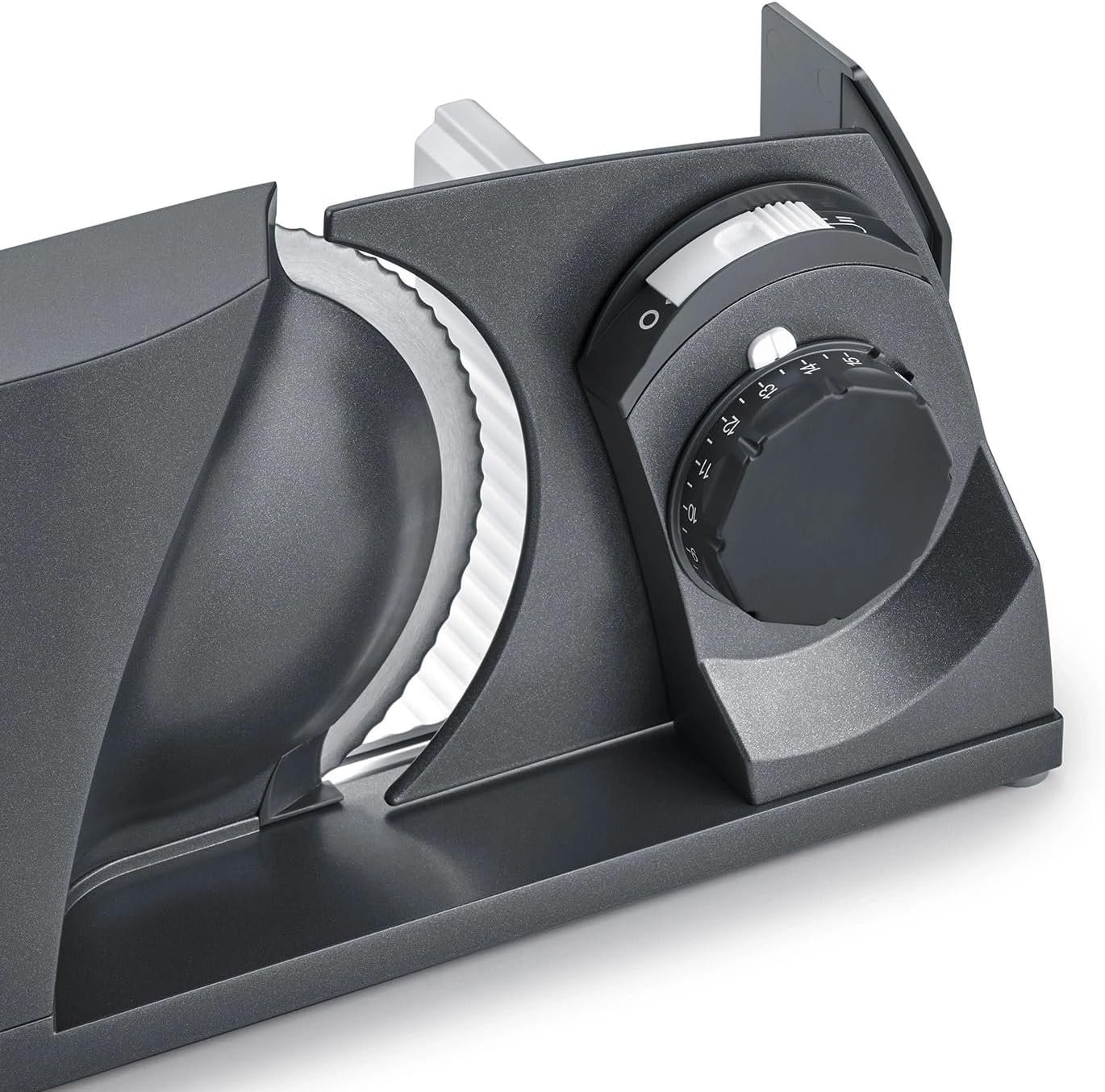 Die Schnittstärke ist dabei stufenlos von 0 bis 15 mm einstellbar. Das Drehrad bietet einen angenehmen Widerstand, sodass die Einstellung nicht versehentlich verrutscht.