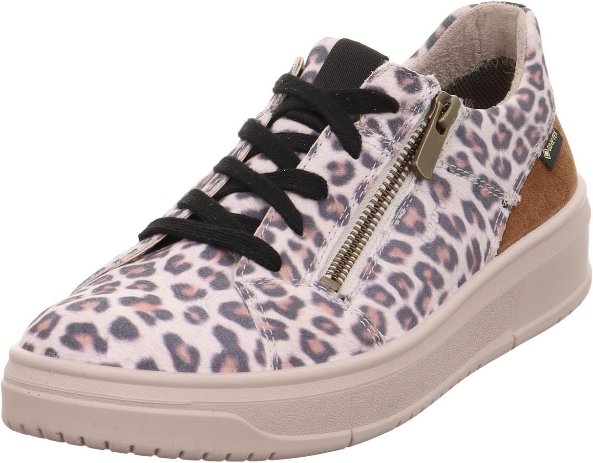 Der Legero Damen REJOISE Gore-Tex Sneaker in der spannenden Farbvariante “Panther Print” (Modellnummer 9180) verspricht, genau diese Lücke zu schließen. Er kombiniert die Leichtigkeit und den Stil eines Retro-Turnschuhs mit der kompromisslosen Funktionalität einer GORE-TEX Membran.