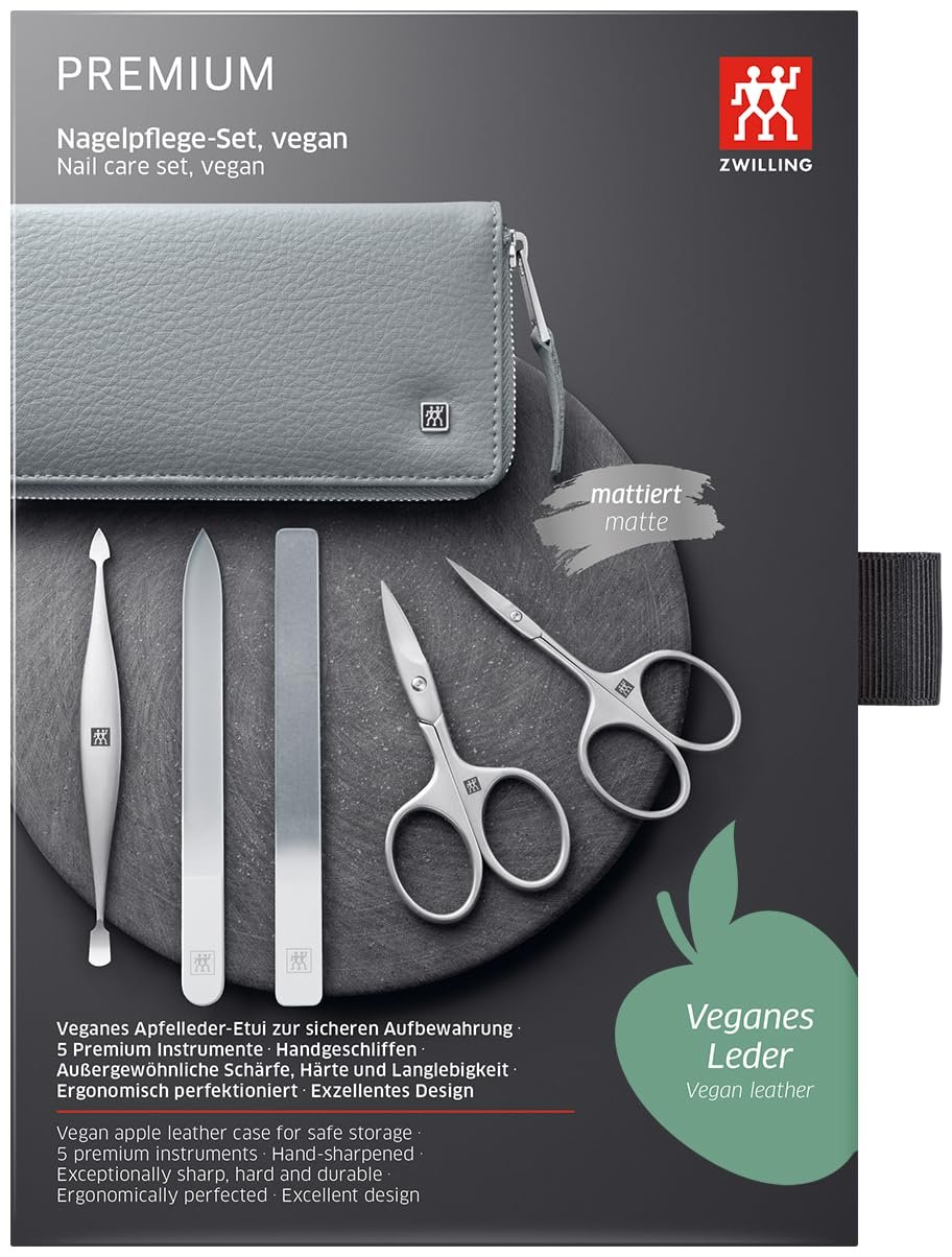Das ZWILLING 5-teilige Maniküre-Set im grauen Apfelleder-Etui (97003) ist mehr als nur ein Gebrauchsgegenstand. Es ist ein Upgrade für Ihre Körperpflege.